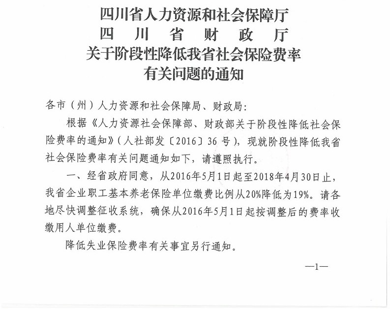 四川省人力资源和社会保障厅、四川省财政厅关于阶段性降低我省社会保险费率有关问题的通知