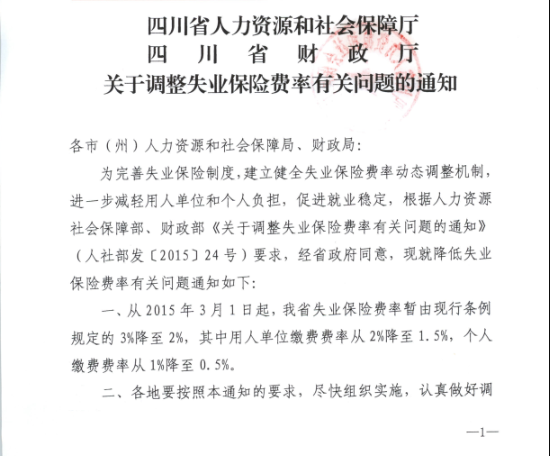 四川省人力资源和社会保障厅、四川省财政厅关于调整失业保险费率有关问题的通知